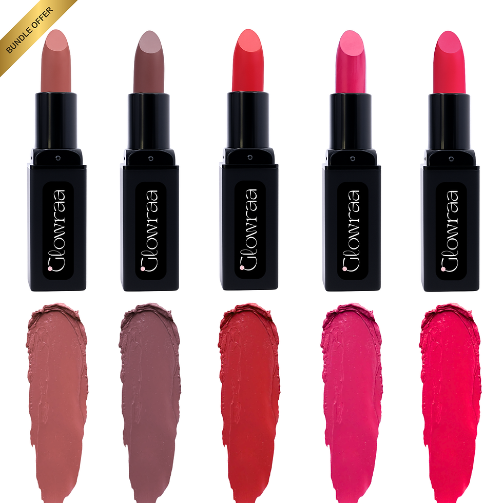 Glowraa Lipsticks are crafted with a luxurious blend of natural oils, nourishing butters, and skin-friendly ingredients to give you the perfect pout. Infused with Sweet Almond Oil, Shea Butter, and Vitamin E, our formula keeps your lips hydrated, soft, and protected all day long. With a smooth, non-drying texture, each swipe delivers a rich, vibrant color that enhances your beauty effortlessly.